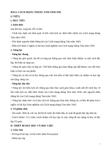 BÀI 6: CÁCH MẠNG THÁNG TÁM NĂM 1945 (1 TIẾT) I. MỤC TIÊU 1. Kiến thức