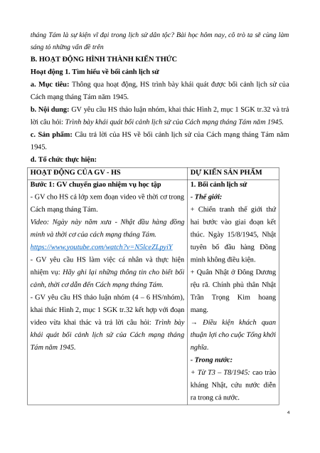 - Phân tích được ý nghĩa và bài học kinh nghiệm của Cách mạng tháng Tám năm 1945. 2. Năng lực - Năng lực chung