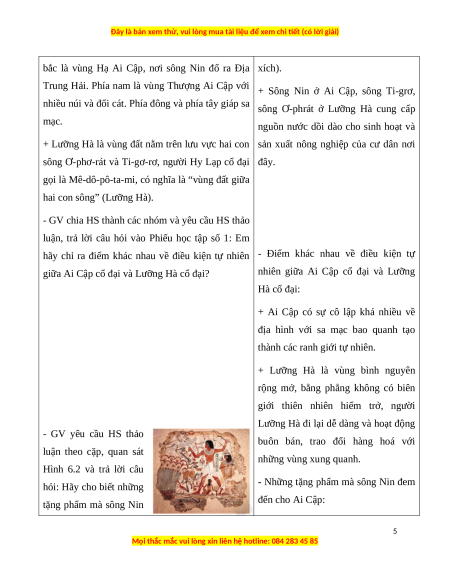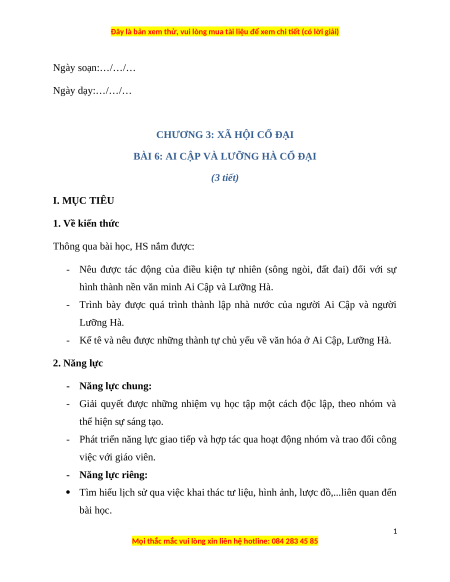 BÀI 6: AI CẬP VÀ LƯỠNG HÀ CỔ ĐẠI (3 tiết) I. MỤC TIÊU 1. Về kiến thức