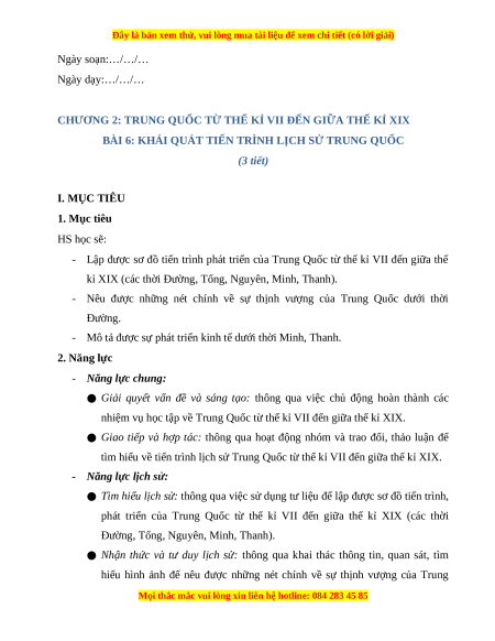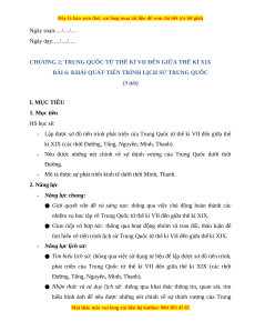 BÀI 6: KHÁI QUÁT TIẾN TRÌNH LỊCH SỬ TRUNG QUỐC (3 tiết) I. MỤC TIÊU 1. Mục tiêu HS học sẽ: