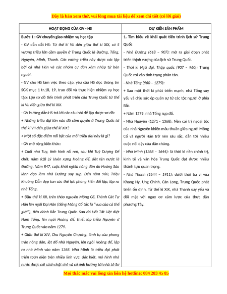 Giáo án Bài 6 Lịch sử 7 Cánh diều (Phiên bản 2): Khái quát tiến trình lịch sử Trung Quốc