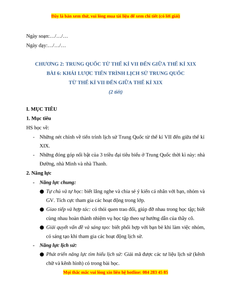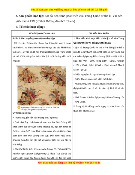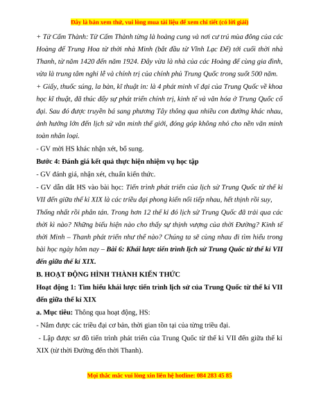 Giáo án Bài 6 Lịch sử 7 Chân trời sáng tạo: Khái lược tiến trình lịch sử Trung Quốc từ thế kỉ VII đến giữa thế kỉ XIX (phiên bản 2)