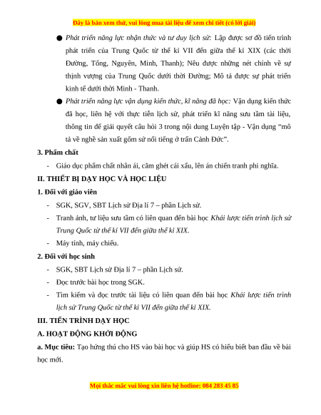 - Những nét chính về tiến trình lịch sử Trung Quốc từ thế kỉ VII đến giữa thế kỉ XIX.