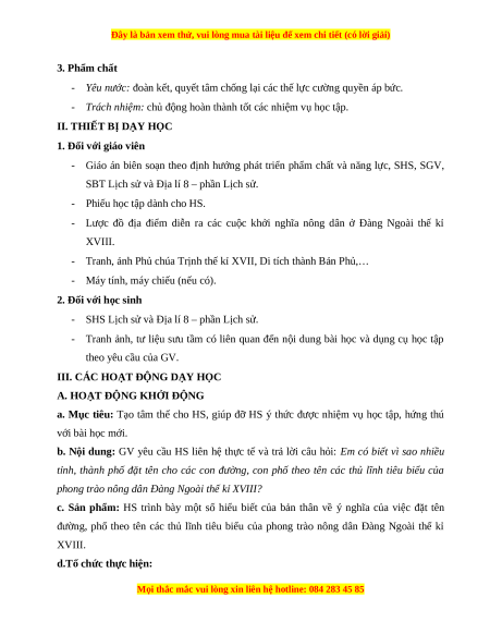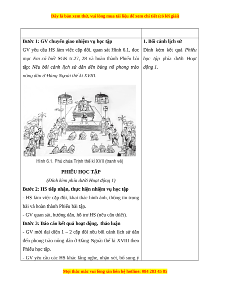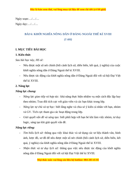 Giáo án Bài 6 Lịch sử 8 Cánh diều (2024): Khởi nghĩa nông dân ở Đàng ngoài thế kỉ XVIII