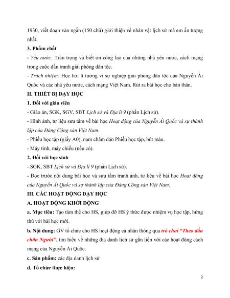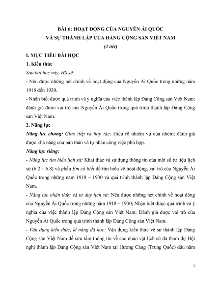 Giáo án Bài 6 Lịch sử 9 Chân trời sáng tạo: Hoạt động của Nguyễn Ái Quốc và sự thành lập Đảng Cộng sản Việt Nam