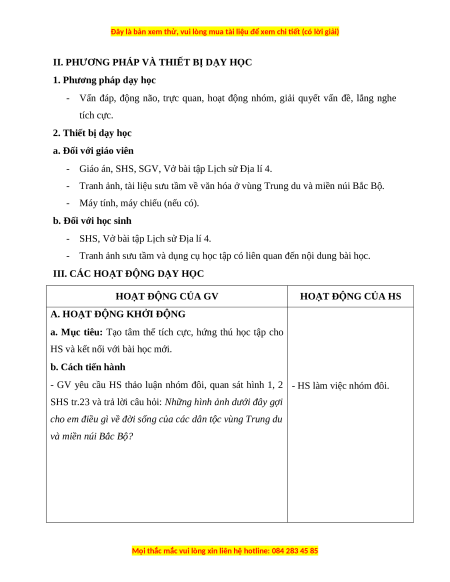 Giáo án Bài 6 Lịch sử & Địa lí lớp 4 Chân trời sáng tạo: Một số nét văn hoá ở vùng trung du và miền núi Bắc Bộ