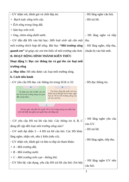 môi trường thích hợp để sống. Bài học “Môi trường sống - HS lắng nghe, tiếp thu,