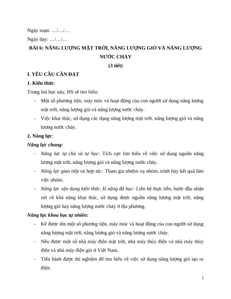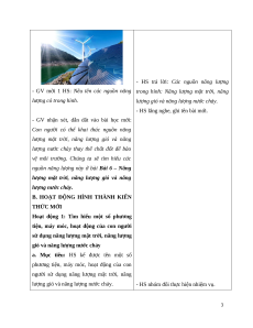 BÀI 6: NĂNG LƯỢNG MẶT TRỜI, NĂNG LƯỢNG GIÓ VÀ NĂNG LƯỢNG NƯỚC CHẢY (3 tiết)