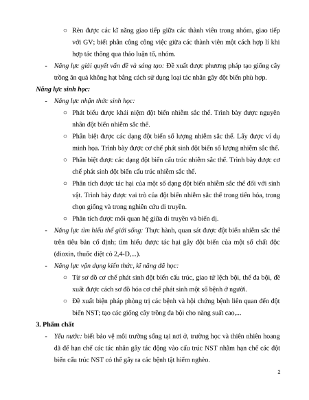 được tác hại gây đột biến của một số chất độc (dioxin, thuốc diệt cỏ 2,4-D,...). 2. Năng lực