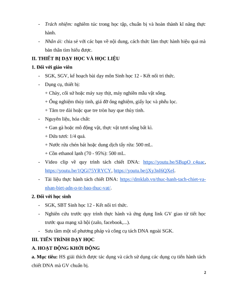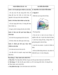 - Thực hành tách chiết được DNA từ các mẫu vật sống. 2. Năng lực