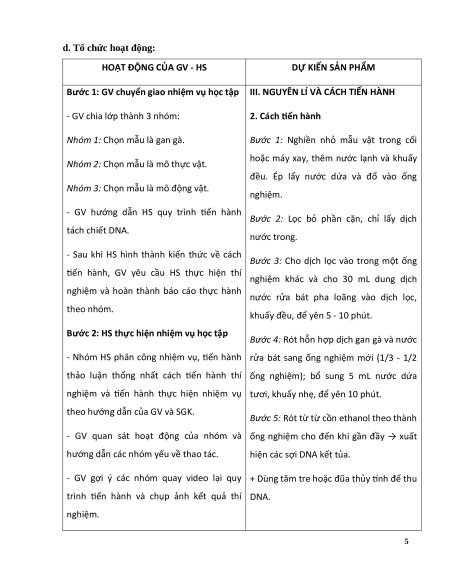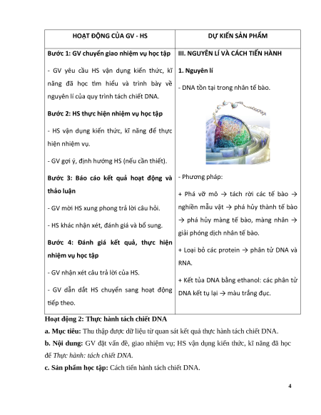 Giáo án Bài 6 Sinh học 12 Kết nối tri thức: Thực hành: Tách chiết DNA