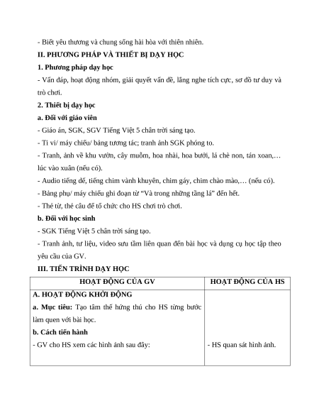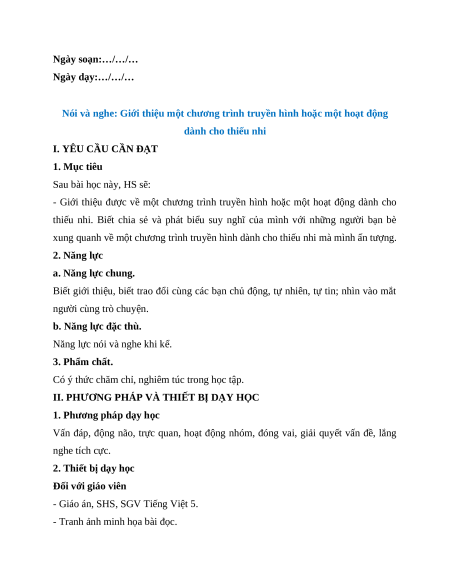 II. PHƯƠNG PHÁP VÀ THIẾT BỊ DẠY HỌC