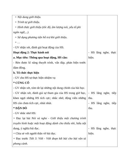 vui; nhấn giọng ở những từ ngữ miêu tả cảnh vật, âm thanh,... - HS lắng nghe GV đọc
