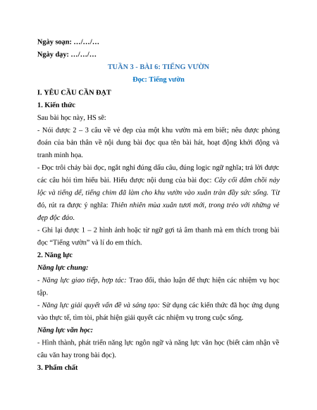 TUẦN 3 - BÀI 6: TIẾNG VƯỜN Đọc: Tiếng vườn