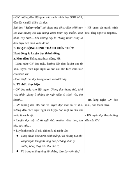 Giáo án Bài 6: Tiếng vườn Tiếng Việt lớp 5 Chân trời sáng tạo
