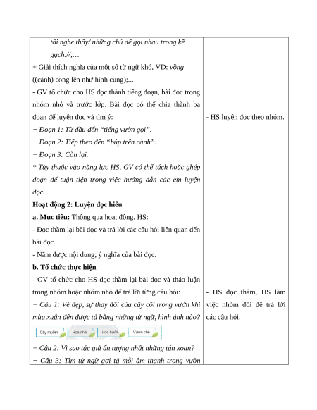 Bài đọc “Tiếng vườn” nội dung nói về sự đâm chồi nảy - HS quan sát tranh minh
