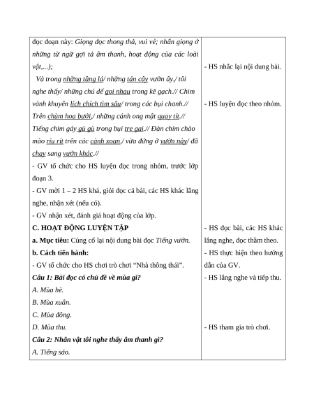 đọc “Tiếng vườn” và lí do em thích. 2. Năng lực