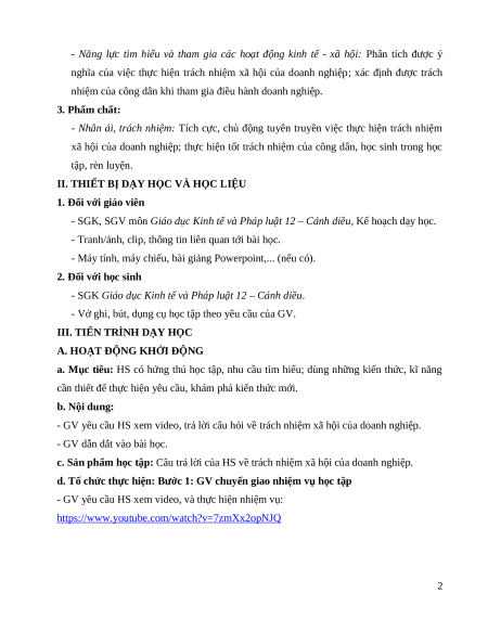 Giáo án Bài 6: Trách nhiệm xã hội của doanh nghiệp KTPL 12 Cánh diều