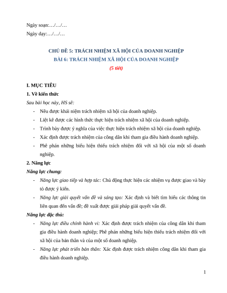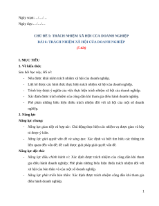 BÀI 6: TRÁCH NHIỆM XÃ HỘI CỦA DOANH NGHIỆP (5 tiết) I. MỤC TIÊU 1. Về kiến thức