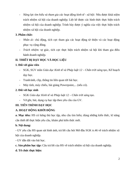 Giáo án Bài 6: Trách nhiệm xã hội của doanh nghiệp KTPL 12 Chân trời sáng tạo