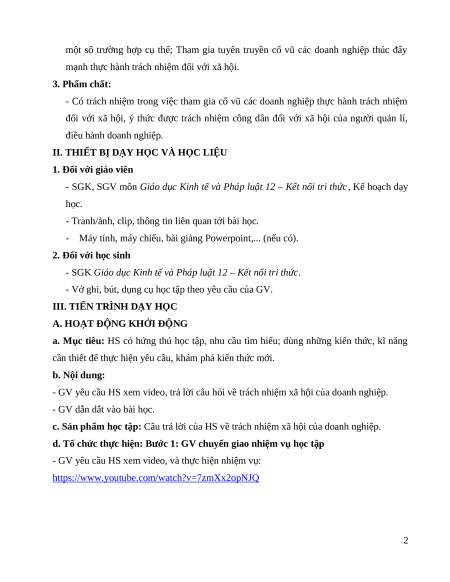 Giáo án Bài 6: Trách nhiệm xã hội của doanh nghiệp KTPL 12 Kết nối tri thức