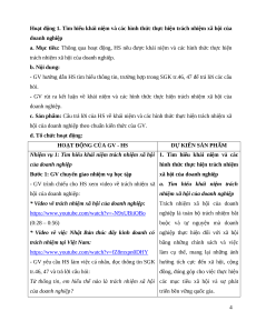 - GV rút ra kết luận về khái niệm và các hình thức thực hiện trách nhiệm xã hội của doanh nghiệp.