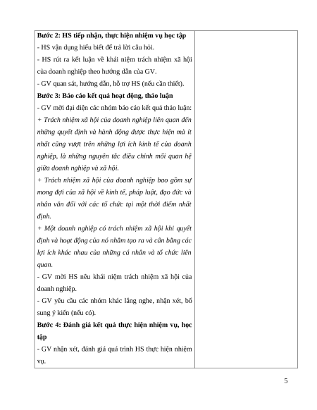 thực hiện. Và em hiểu thế nào là trách nhiệm xã hội của doanh nghiệp.