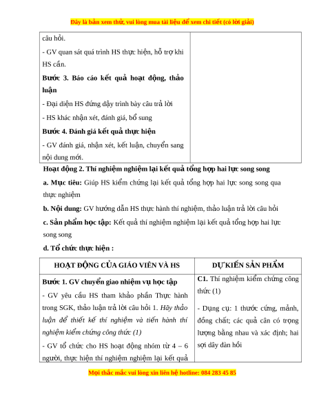 Đây là bản xem th , vu ử i lòng mua tài li u ệ đ xe ể m chi ti t (c ế ó l i ờ gi i ả ) c. S n ả ph m ẩ h c ọ t p: ậ N i ộ dung nh n ậ xét về tác d ng ụ c a ủ h p ợ l c ự so v i ớ tác d ng c ụ a hai ủ l c s ự ong song tác d ng đ ụ ng t ồ h i ờ .