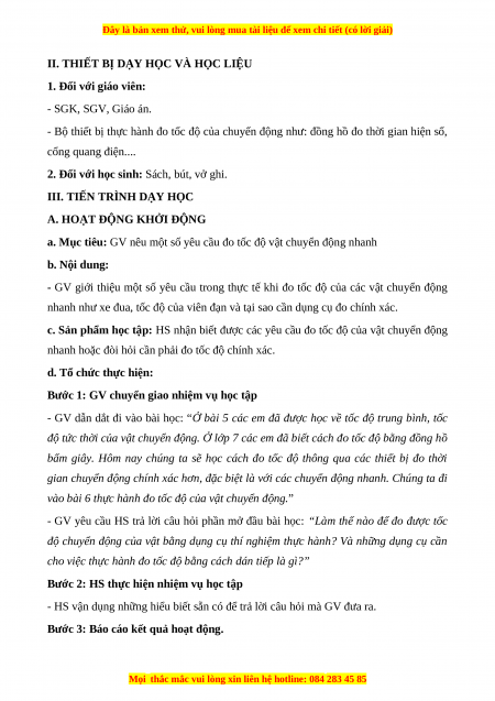 - Năng lực giải quyết vấn đề: Nhận biết các thiết bị thí nghiệm trong thực hành đo tốc