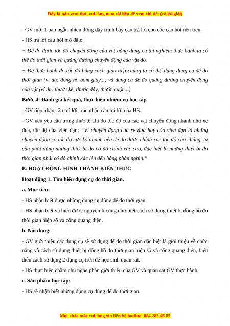 Hoạt động 1. Tìm hiểu dụng cụ đo thời gian. a. Mục tiêu: