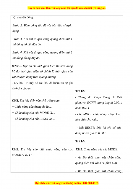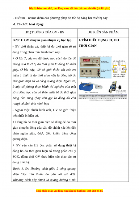 - GV giới thiệu các dụng cụ sẽ sử dụng để đo thời gian đặc biệt là giới thiệu về chức