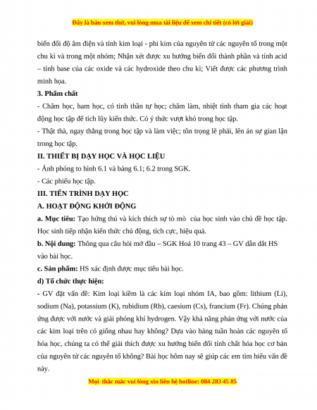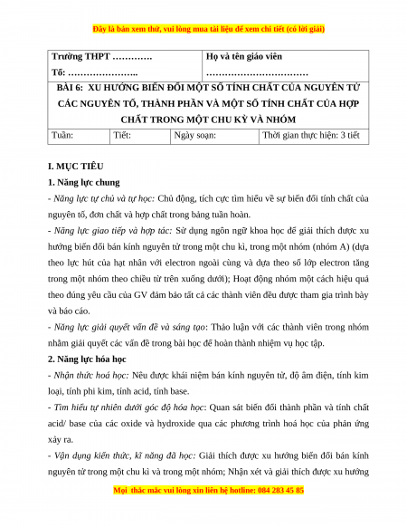 – tính base của các oxide và các hydroxide theo chu kì; Viết được các phương trình minh họa. 3. Phẩm chất