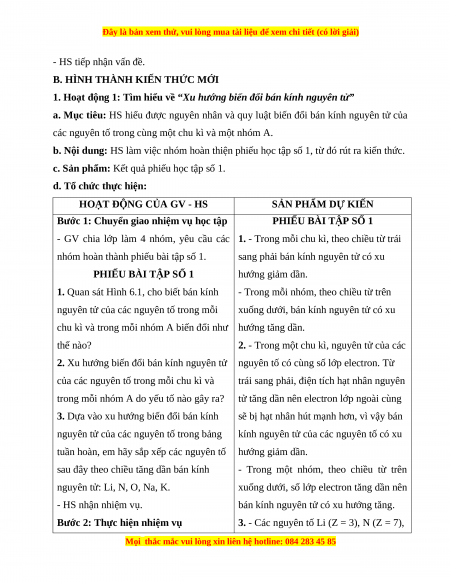 1. Hoạt động 1: Tìm hiểu về “Xu hướng biến đổi bán kính nguyên tử”