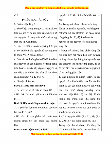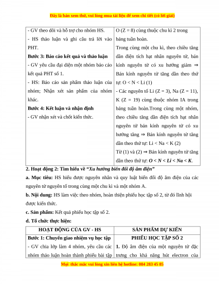- HS: Báo cáo sản phẩm thảo luận của tự: O < N < Li (1)