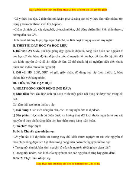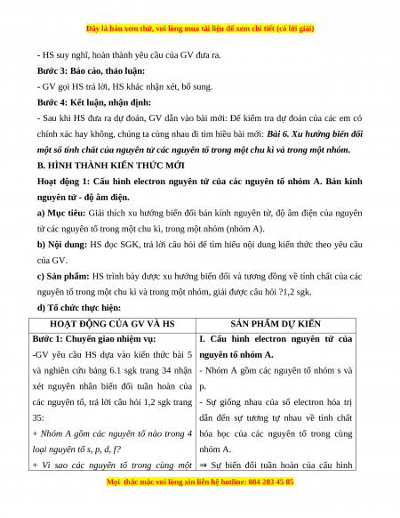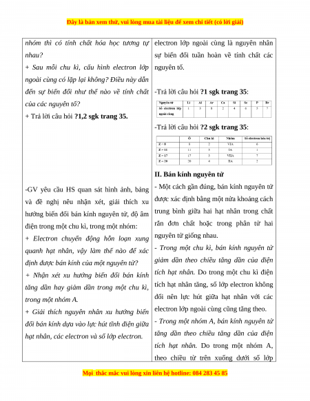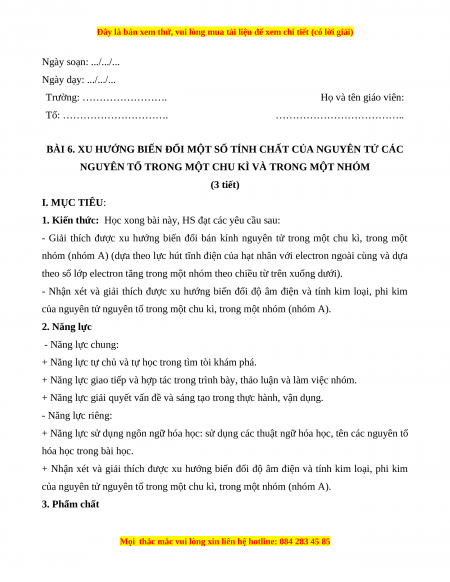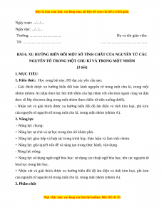 BÀI 6. XU HƯỚNG BIẾN ĐỔI MỘT SỐ TÍNH CHẤT CỦA NGUYÊN TỬ CÁC