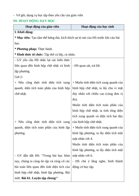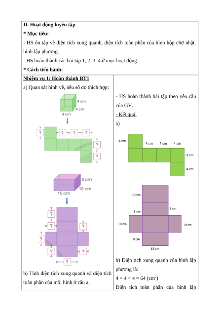 - HS ôn tập về diện tích xung quanh, diện tích toàn phần của hình hộp chữ nhật, hình lập phương.