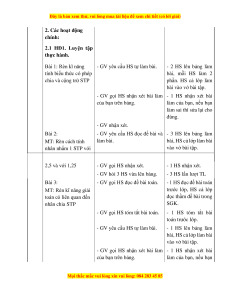 - GV yêu cầu HS đọc đề bài và - 3 HS lên bảng làm MT: Rèn cách tính làm bài. bài, HS cả lớp làm bài nhân nhẩm 1 STP với vào vở bài tập. 2,5 và với 1,25 - GV gọi HS nhận xét. - 1 HS nhận xét.
