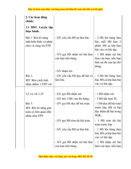 - Rèn kỹ năng thực hiện phép chia STN cho STN mà thương tìm được là STP.