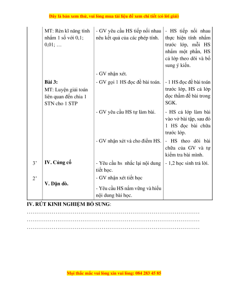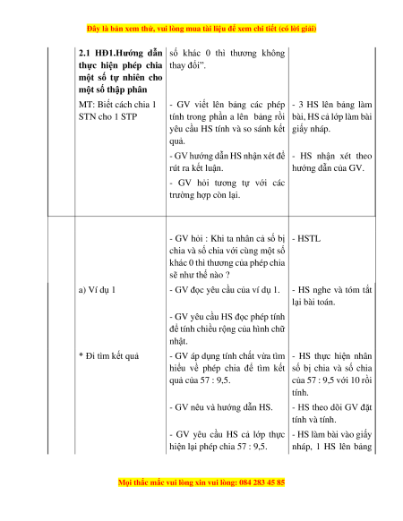 - HS nắm được phép chia 1 số TN cho 1 số TP bằng cách đưa về phép chia các STN.