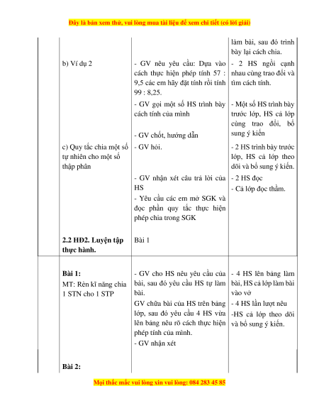 đọc phần quy tắc thực hiện phép chia trong SGK
