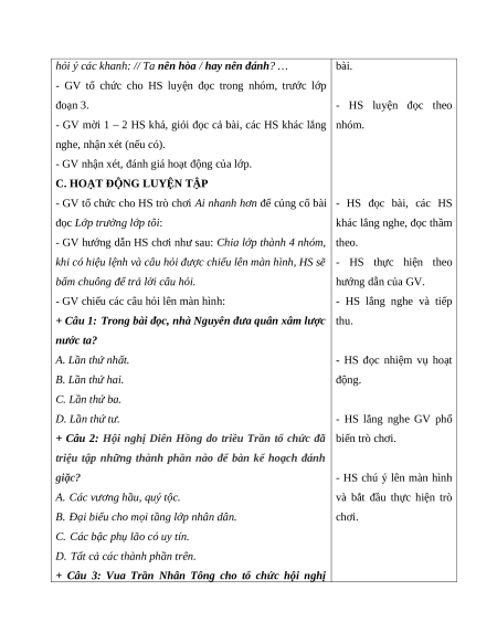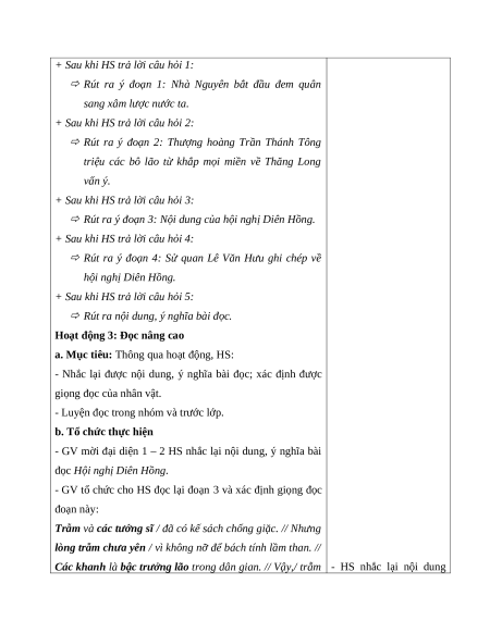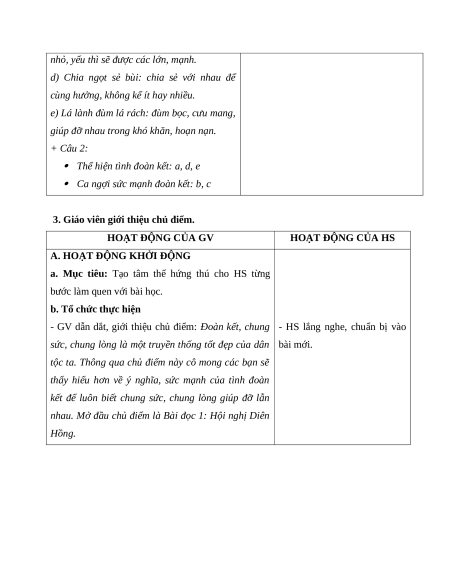 nhau. Mở đầu chủ điểm là Bài đọc 1: Hội nghị Diên Hồng.