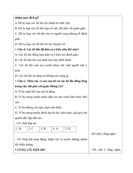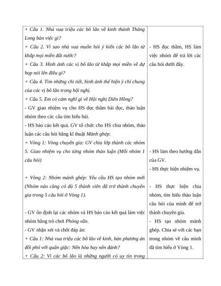 triệu các bô lão từ khắp nơi về để hỏi ý kiến nên đánh hay nên hoà. Qua bài đọc có