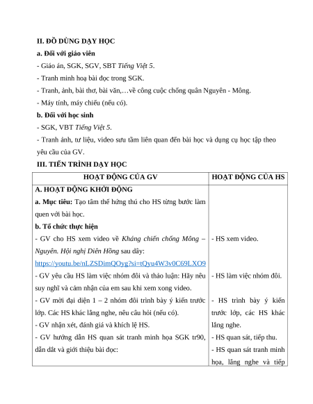 Giáo án Tiếng Việt 5 Cánh diều – Bài 7 Ngày soạn:…/…/… Ngày dạy:…/…/…