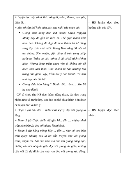 suy tư, nhấn giọng phù hợp với lời kể chuyện. Tốc độ đọc khoảng 85 – 90 tiếng/ phút. Đọc thầm nhanh.