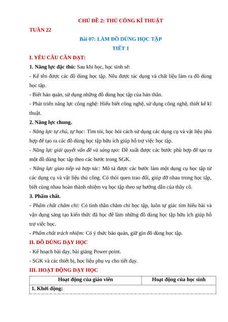 - Năng lực giao tiếp và hợp tác: Mô tả được các bước làm một dụng cụ học tập từ