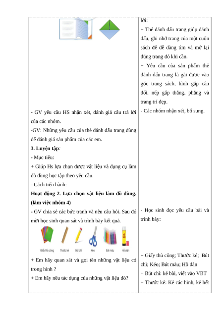 Giáo án Bài 7 Công nghệ lớp 3 Cánh diều: Làm đồ dùng học tập