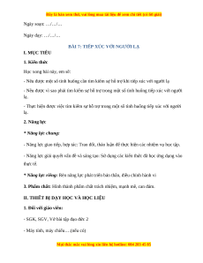 BÀI 7: TIẾP XÚC VỚI NGƯỜI LẠ I. MỤC TIÊU 1. Kiến thức Học xong bài này, em sẽ: