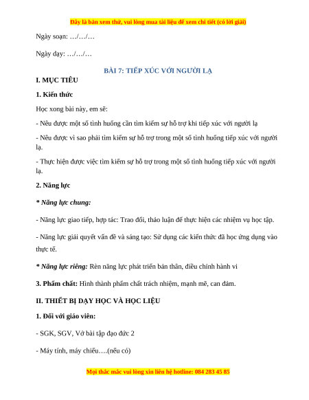 - Thực hiện được việc tìm kiếm sự hỗ trợ trong một số tình huống tiếp xúc với người lạ. 2. Năng lực