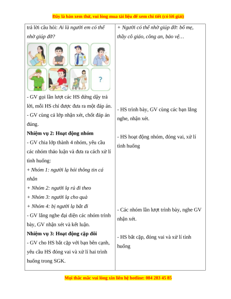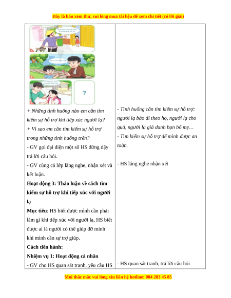 - Nêu được một số tình huống cần tìm kiếm sự hỗ trợ khi tiếp xúc với người lạ