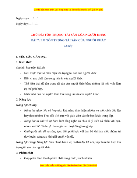 - Nhắc nhở bạn bè, người thân tôn trọng tài sản của người khác. 2. Năng lực